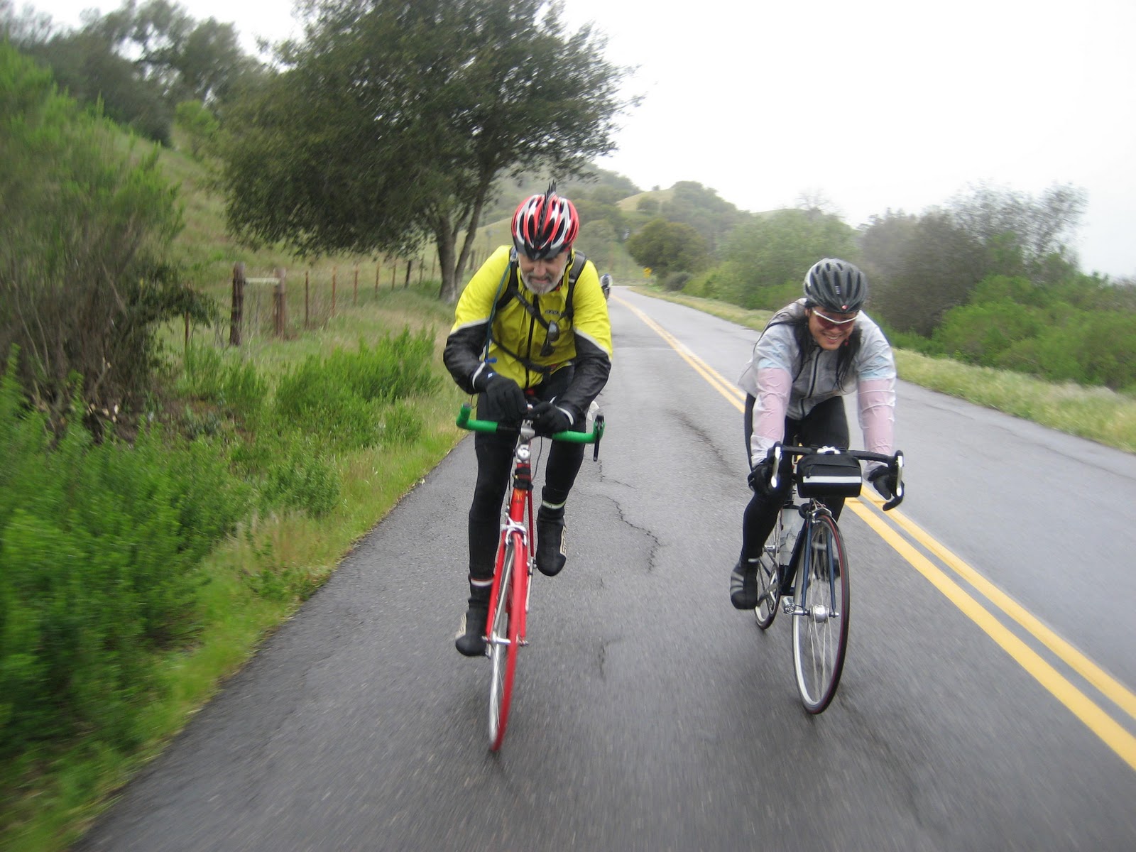 I then started to get the chills so I had to get rolling. It really started to pour as we made our way to Shell Beach, Pismo Beach and Oceano on PCH. From Oceano, in the pouring rain, we climbed up on the mesa that rises above the area. Some pretty tough little climbs in there. It was much nicer climbing in the rain than going fast in it.